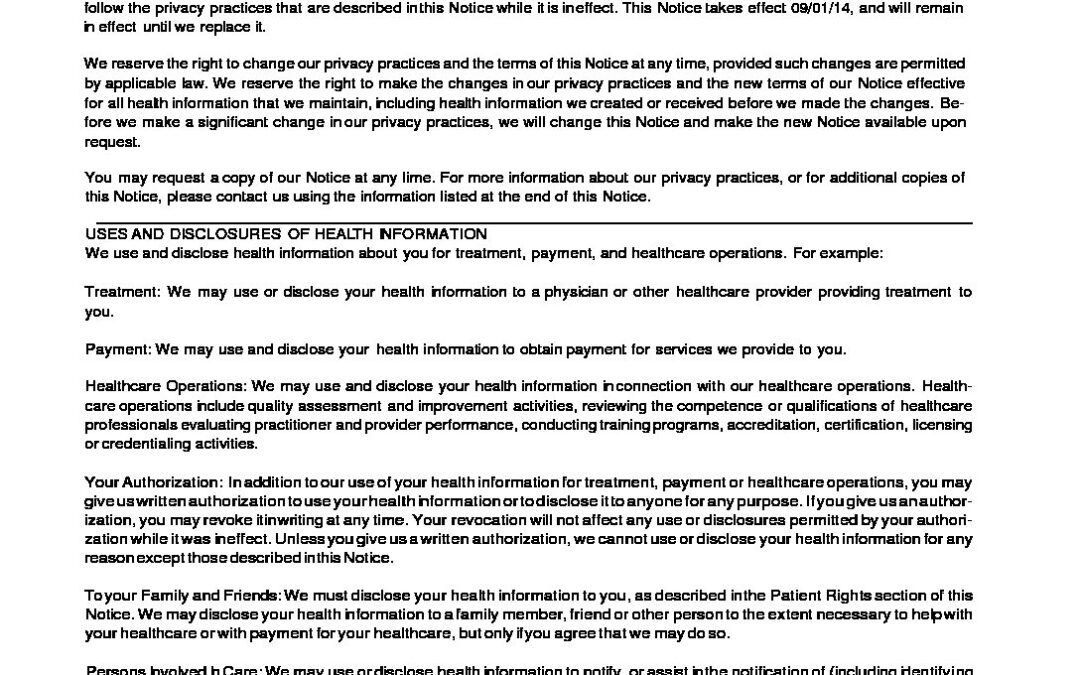 Notice of Privacy Practice RFD